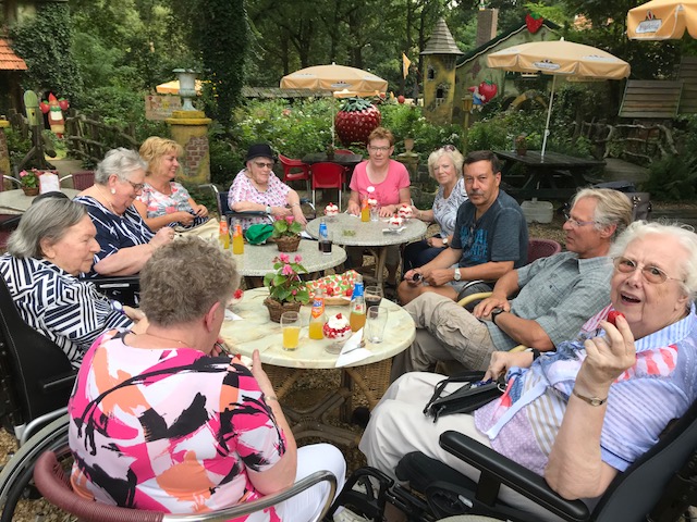 In 2021 werden door zorgmedewerkers van alle afdelingen/groepen in Huize Rosa diverse activiteiten georganiseerd en uitgevoerd voor hun bewoners. Vanaf 2019 had Stichting Vrienden 38 euro per bewoner ter beschikking gesteld. De gedachte achter deze gift was om medewerkers/teams te stimuleren gemeenschappelijke, zinvolle activiteiten te bedenken en te organiseren voor hun bewoners. Op grond van de ervaringen beslist Stichting Vrienden jaarlijks of de gift wordt gecontinueerd. De gewenningsperiode in het eerste jaar en de maatregelen in verband met Corona in 2020 heeft ertoe geleid dat in deze eerste twee jaren niet alle afdelingen gebruik van dit aanbod hebben gemaakt, maar 2021 kan een succes worden genoemd. Niet alleen hebben medewerkers de smaak te pakken en vroegen ze uit zichzelf of ze ook in 2022 van de gift gebruik mogen maken, maar de bewoners hebben met veel plezier aan erg leuke dingen kunnen deelnemen. Om u een beeld te geven van de activiteit: Woongroepen 1-2 èn woongroepen 5-6 hadden de knuffelboerderij Bert’s Animals op bezoek, waarbij het knuffelen en contact met de dieren centraal stond. Werkelijk een feestje voor de bewoners die enorm hebben genoten. Woongroepen 3-4 hebben een High tea gehouden met muzikale begeleiding van een harpist. Het is op zich al heerlijk genieten van al die kleine lekkers hapjes die werden geserveerd, maar dan ook nog zulke prachtige harpmuziek erbij, dat maakte het helemaal ‘af’. Woontoren BG hadden een muzikale middag. Deze middag werd afgesloten met een heerlijk verzorgde Chinese rijsttafel, dat ging er echt wel in. Woontoren etage 1 heeft een wandeling gemaakt door de oude en mooie bossen bij Berg en Dal. En na zo’n mooie natuurervaring is het natuurlijk zalig om af te sluiten met pannenkoeken in ‘de Duivelsberg’. Woontoren etage 2-3 zijn naar ‘de Eikenhorst’ in Wijchen geweest voor een prachtige wandeling in dit mooie natuurgebied. En ja, dan wil de inwendige mens ook wel wat, dus werd het uitgebreid lunchen op het terras van het theehuis met een leuke quiz. Woontoren etage 4-5 zijn ook naar de Eikenhorst geweest, maar deze bewoners hebben tijdens de lunch een heel gezellig spel gedaan. U leest het al, in 2021 is door deze leuke activiteiten iedereen, bewoners en personeel, enthousiast geworden en de plannen voor 2022 zijn al in de maak. Dus een vast bedrag per bewoner? De kop is er echt af!