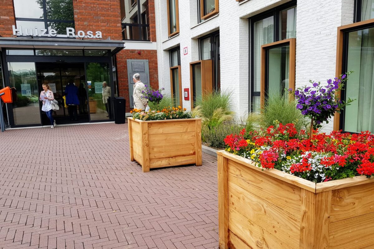 Het initiatief van de Cliëntenraad om de entree van Huize Rosa fleurig en kleurrijk te maken met bloemen en planten, is werkelijkheid geworden. Stichting Vrienden gaat, zeker in deze moeilijke corona-tijd, graag mee in de gedachte om het plein aan de voorzijde op te vrolijken door het plaatsen van bloembakken, gevuld met kleur en fleur. Huize Rosa zorgt ervoor dat ieder jaar opnieuw bloemen en vaste planten in de bakken en de boompjes komen en dat deze worden verzorgd. En zo wordt bezoek kleurrijk welkom geheten en kunnen bewoners genieten van dit plein vol bloemen en planten!