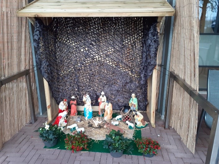 Het jaarlijks inrichten van een groot aantal kerststallen is een prachtige traditie in de wijk Hees, en Huize Rosa doet al jaren mee met (onder andere) een prachtige grote kerststal onder de trap. Helaas moest het huis vorig jaar verstek laten gaan omdat vanwege de coronamaatregelen wijkbewoners binnen niet welkom waren. Maar voor elk probleem is een oplossing, toch? Met een gift van Stichting Vrienden van €1000 kon Huize Rosa een buitenkerststal kopen en werd deelname aan de Kribjesroute weer mogelijk! Het aanbieden van een kop koffie in het Rosarium valt weg, maar een kopje koffie of chocola buiten draagt, net als de kerststal, zeker bij aan de gezelligheid en levendigheid voor bewoners en bezoekers. En zo blijft een mooie traditie in stand!