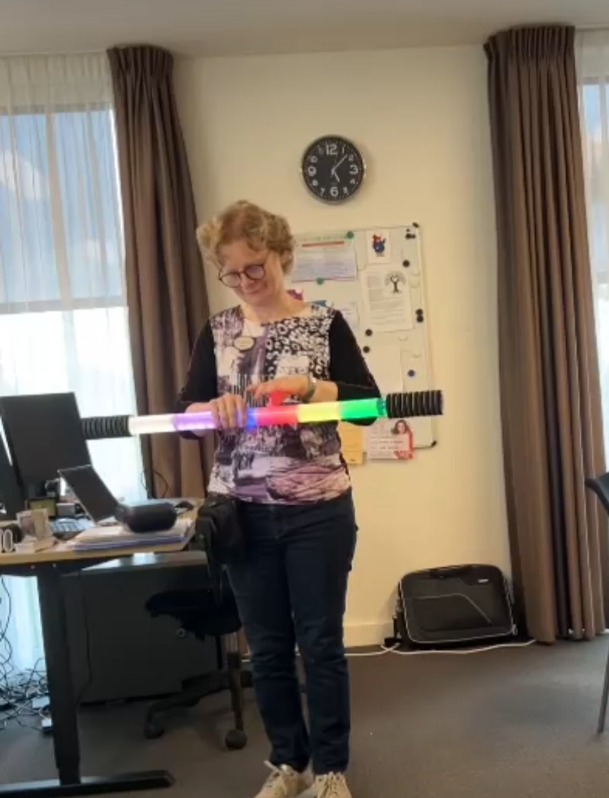 Er is een liedje dat begint met de tekst: ‘Doe je handen maar omhoog, en zwaai van links naar rechts, en we klappen, klappen, klappen op de beat net als de rest, want bewegen is gezond’! Dat kan wel zijn, maar wanneer je oud bent, minder mobiel of niet meer goed begrijpt wat je moet doen, dan kan bewegen heel lastig zijn. Dáár is iets op gevonden, de moofie stick. Deze ‘stok’ laat je bewegen op bekende muziek van vroeger, aangevuld met licht en geluid, en met leuke en actieve spelinstructies en spelmogelijkheden. De stick is te gebruiken in allerlei situaties, dus ook voor mensen die stoel- of bedgebonden zijn. Stichting Vrienden van Huize Rosa heeft de video bekeken en de enthousiaste verhalen gehoord van mensen die al werken met de moofie stick en onderschrijft de gedachte dat deze ‘stok’ een zinvolle, leuke, motiverende en afwisselende aanvulling is in het kader van ‘Meer bewegen’. Niet alleen wordt de mobiliteit van bewoners gestimuleerd, maar het geeft ook spelplezier. De moofie stick is bovendien makkelijk te verplaatsen en daarom heel geschikt om op verschillende plekken in Huize Rosa in te zetten. Stichting Vrienden heeft besloten om het hele bedrag van de aanschaf van de moofie stick, een bedrag van €1800,00, te bekostigen.