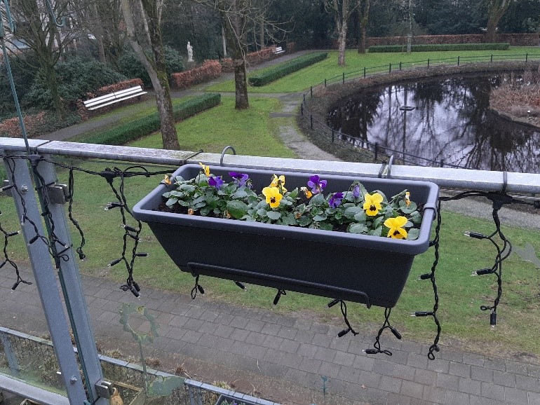 Kleur in de herfst en wintertijd geeft licht in donkere tijden! Dat geldt natuurlijk ook voor bewoners van de woongroepen wanneer ze kunnen genieten van kleurrijke winterviooltjes op de balkons. Stichting Vrienden gunt dit deze bewoners (die zelf niet zo gemakkelijk naar buiten kunnen) van harte. Daarom laat zij ook dit jaar (net als in 2022) voor € 450 de bakken van alle woongroepen vullen. En zo zal ook deze winter de vrolijk gekleurde winterviolen een sfeervolle bijdrage zijn aan een gezellig en fijn vertoeven op de woongroepen.