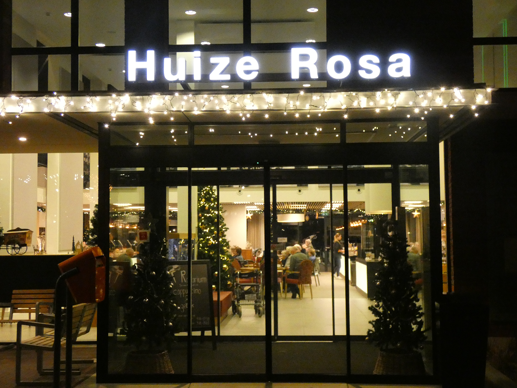 De decembermaand is traditiegetrouw een van de mooiste periodes in Huize Rosa. Bewoners, mantelzorgers, familieleden, vrienden en bekenden genieten van het samen zijn en de vele activiteiten. Een feestelijke aankleding van het zorgcentrum mag daarbij niet ontbreken. Voorgaande jaren viel de versiering aan de buitenkant van het gebouw op door een bijzondere gevelverlichting boven de hoofdingang. Maar helaas was die niet meer bruikbaar. Stichting Vrienden van Huize Rosa vond het belangrijk dat er mooie en sfeervolle verlichting voor terug zou komen en betaalde de nieuwe gevelverlichting plus de verlichting in de boompjes op het voorplein.